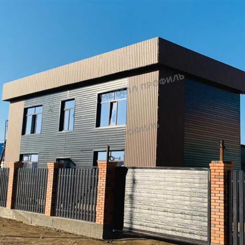 Оцинкованные профилированные панели из стали толщиной 0.5 мм, обработанные полимерным покрытием Полиэстер. Указанный отделочный материал применяют для монтажа фасада. Сайдинг защищён от ржавчины, температурных перепадов, влияния УФ- излучения; фасад из сайдинга смотрится эстетично. Металлосайдинг — практичный и современный вариант для вашего фасада!